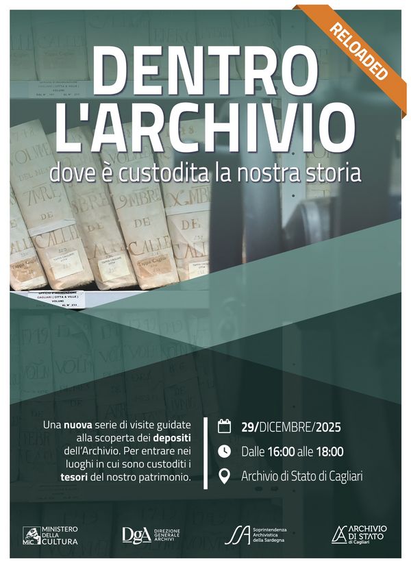 Lunedì 29 dicembre, dalle 16.00 alle 18.00, l’Archivio di Stato di Cagliari effettuerà un’apertura serale con visite guidate nelle nostre sale. Sarà un’occasione per scoprire una parte importante della nostra storia attraverso il patrimonio custodito nei depositi.